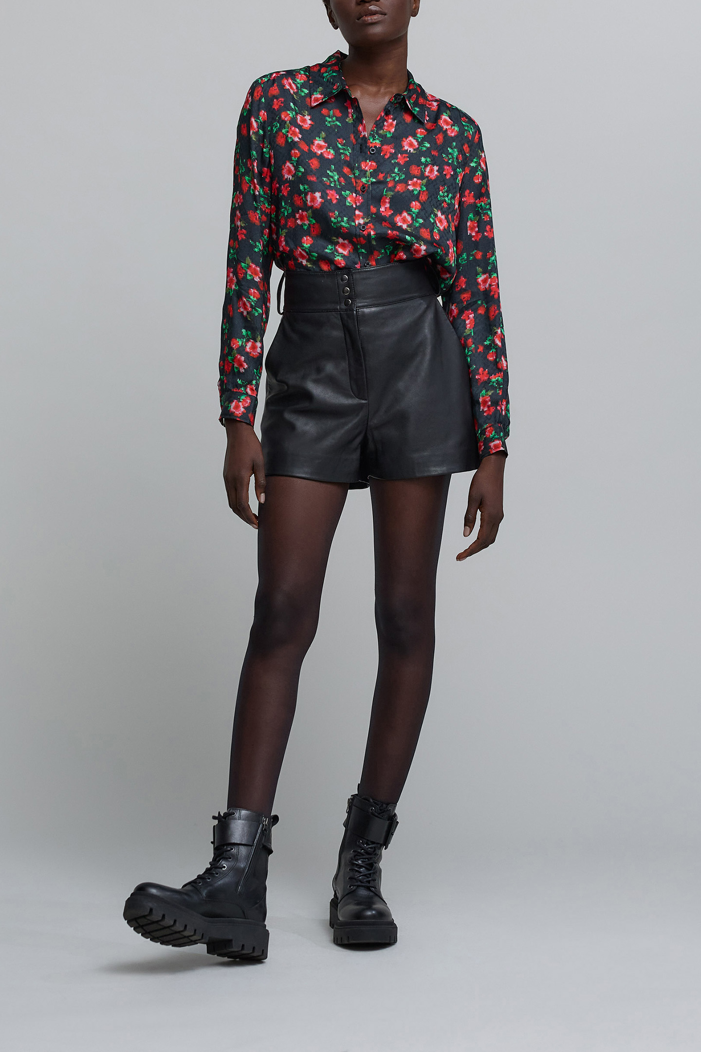 Ikks Reinterprets The Flower Print With A Play Of Pixels On This Flowing Shirt. A Romantic-Rock Spirit To Be Reinforced With Black Jeggings.