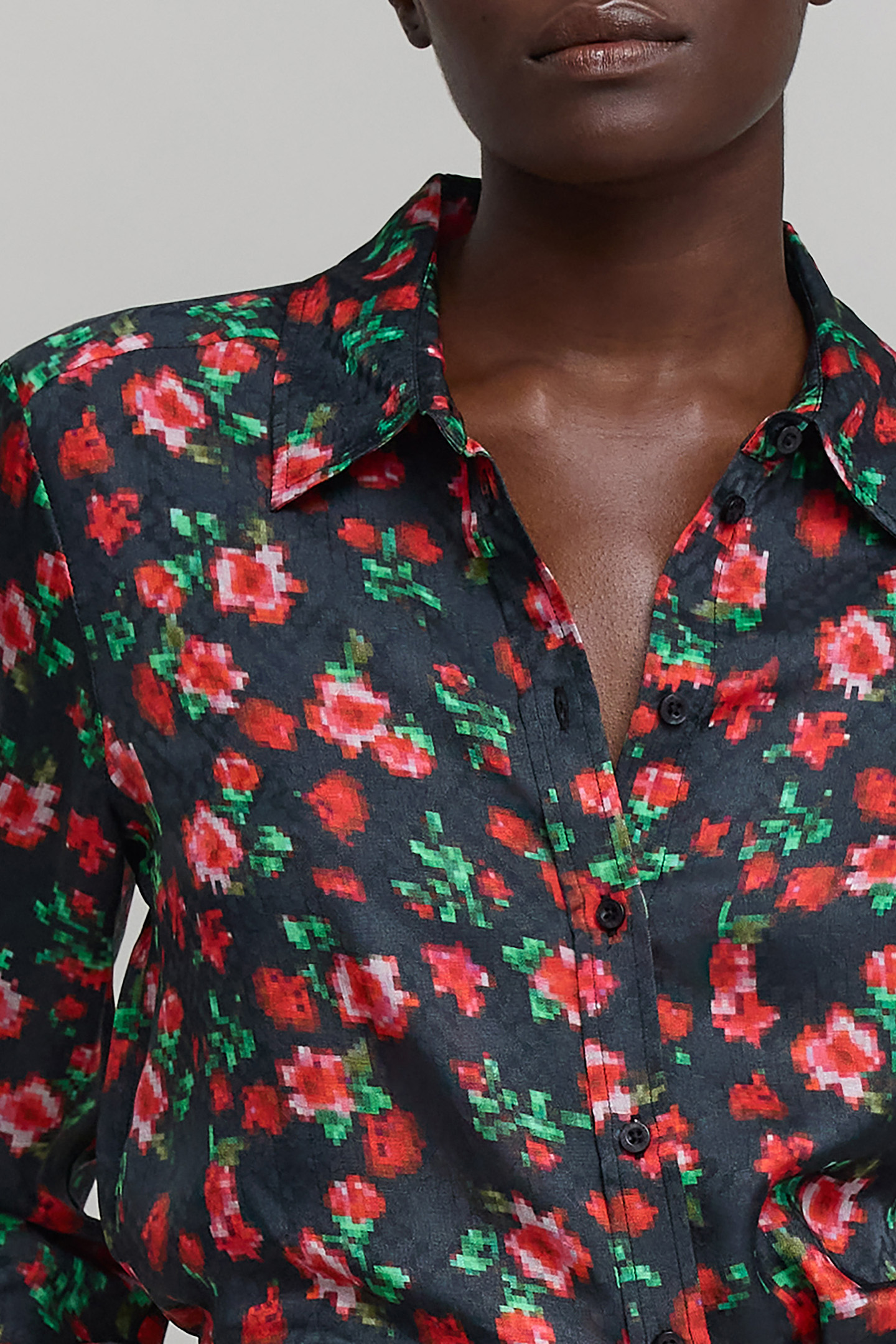 FLOWER PIXEL PRINT BLACK SHIRT