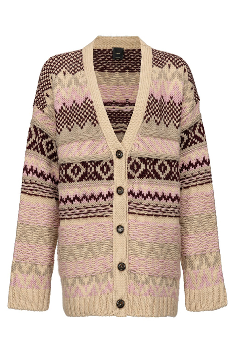 Soft Cardigan In Wool- And Alpaca-Blend Jacquard Yarn, With Multicoloured Pattern. V-Neckline, Long Low Set-In Sleeves And A Front Button Fastening.