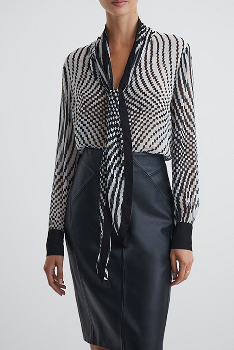 GABBI-CHECK BLOUSE BLACK/WHITE