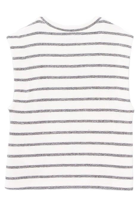 GIRLS' ECRU ORGANIC COTTON T-SHIRT, BLACK STRIPES & PALMS