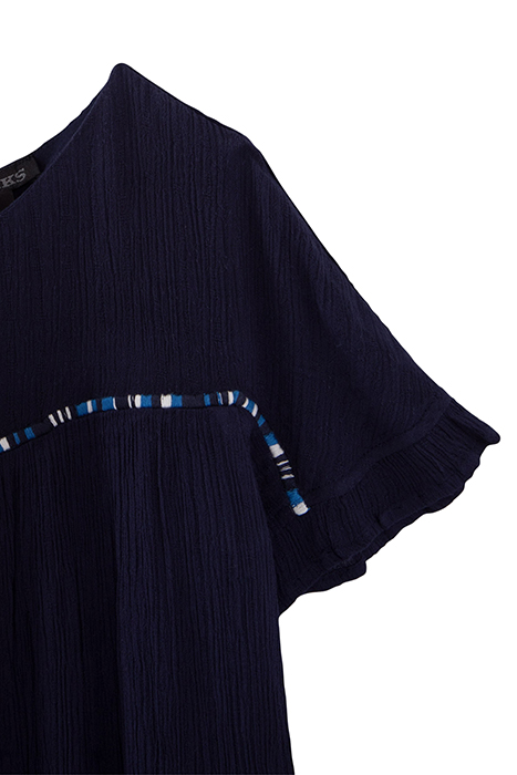 GIRL’S NAVY CREPE ATEBA BRACELET-STYLE EMBROIDERY DRESS