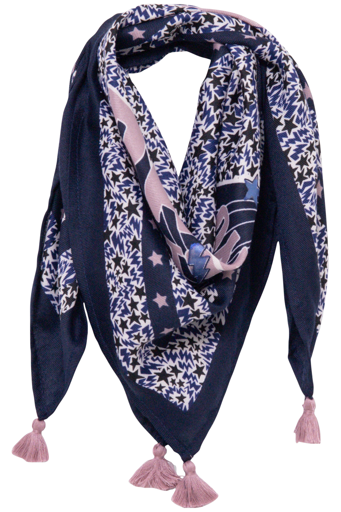 GIRL’S NAVY RECYCLED SQUARE SCARF WITH LIGHTNING-STARS MIX