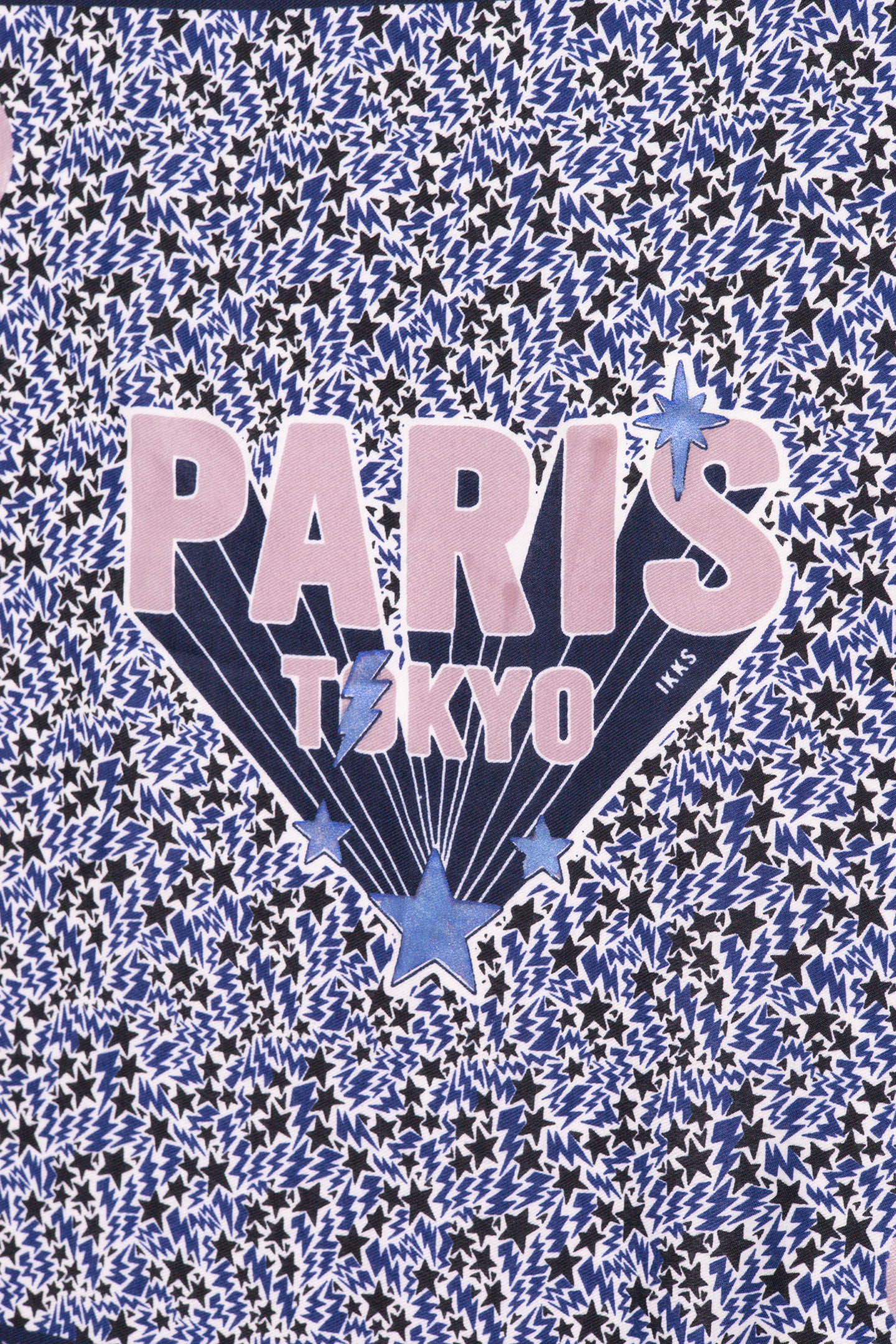 When The Exclusive Print With A Mix Of Stars And Lightning Bolts Meets The Paris-Tokyo Slogan With Blue Foil Stars And Lightning. Your Scarf Becomes A Rock Signature!