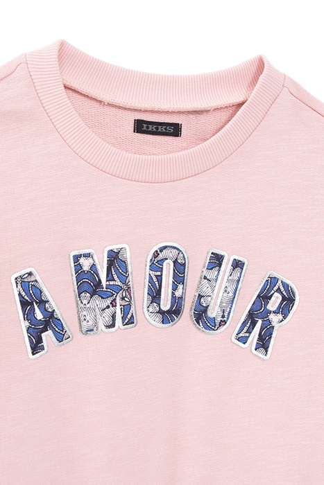 You'Ll Have Ticked All The Boxes With This Pink Sweatshirt In Pink Organic Cotton. The Word Amour On The Front Stands Out With A Graphic Wax Print And Silver Outlines.