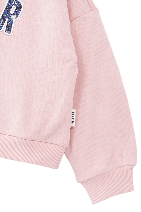 GIRLS' PINK ORGANIC COTTON SWEATSHIRT, FLOCKED WAX SLOGAN