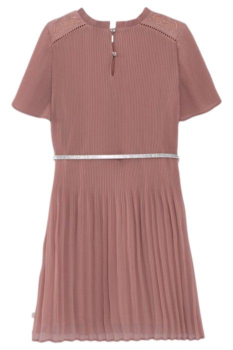 GIRLS’ PINK PLEATED DRESS WITH EMBROIDERED SHOULDERS