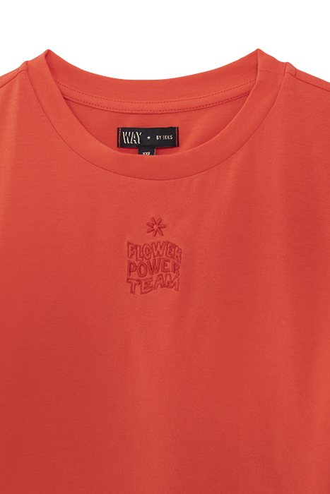 The Embroidered Slogan On This Organic Cotton T-Shirt Is Red On Red. Welcome To The Flower Power Team!
