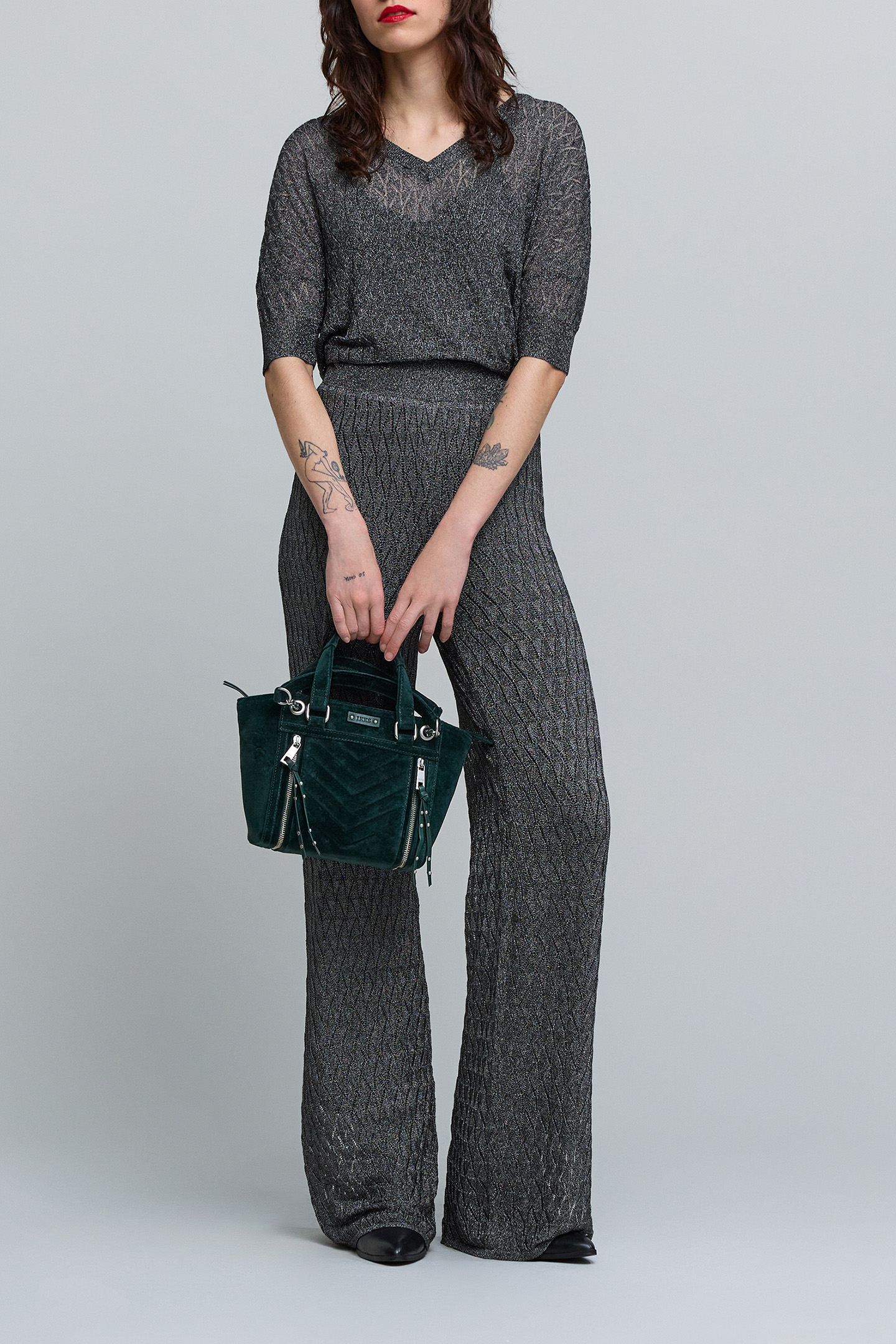 Resolutely Feminine And Rockin, For The Festive Season Or To Brighten Up Your Day, The Sweater Opts For A Fine Lurex Knit With An Openwork Graphic Motif. Pair With Matching Pants.