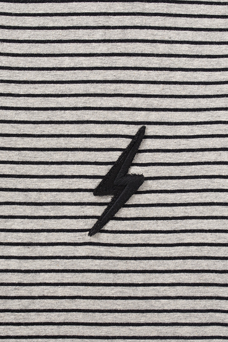 Men’S Grey Sailor-Stripe Style T-Shirt Round Neck, Short Sleeves Black Stripe Motif, Lightning Badge On Chest Ikks #Actforbetter: Upcycled Material From Leftover Stocks