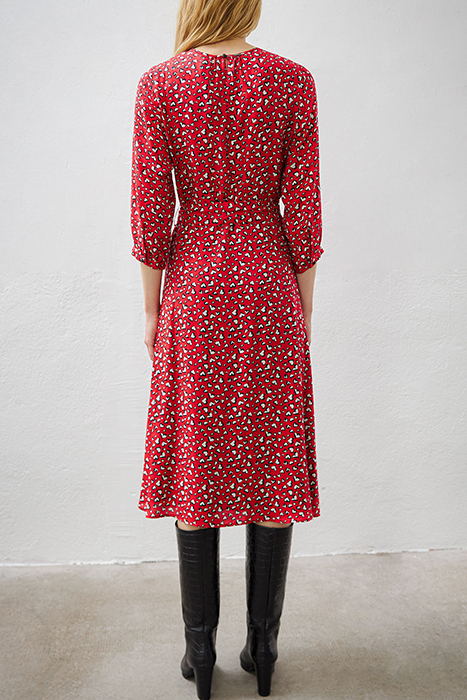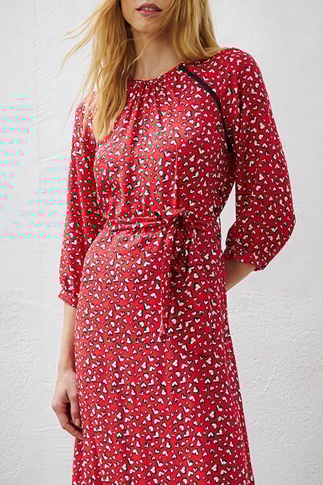 HEART PRINT MIDI DRESS WITH LACE
