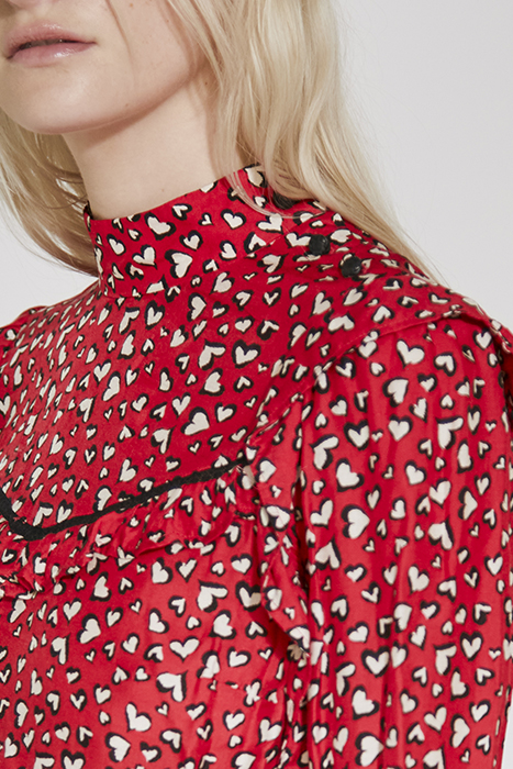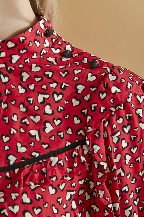 HEART PRINT SHORT DRESS WITH RUFFLES AND LACE