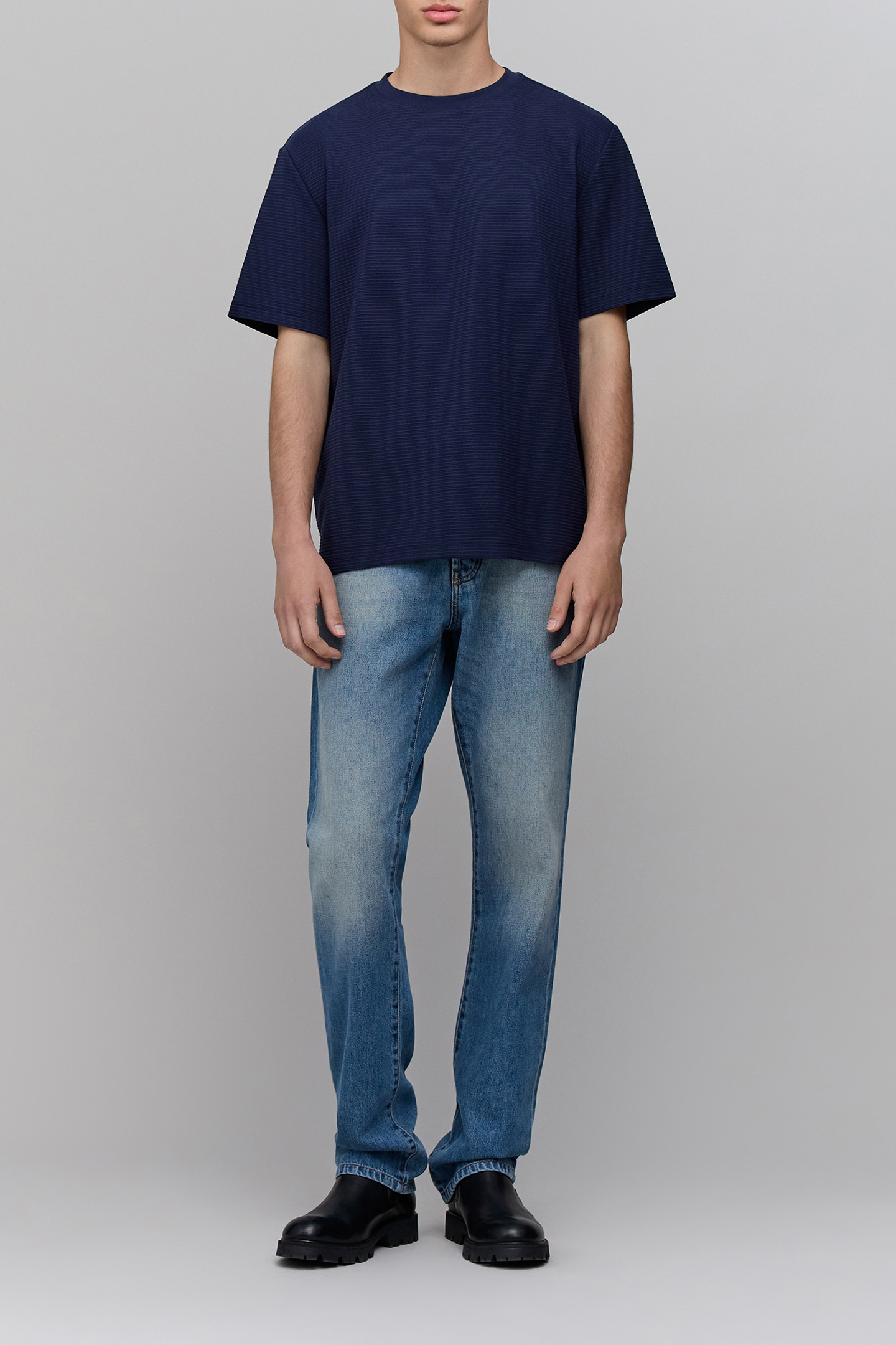 INDIGO SHORT-SLEEVE T-SHIRT WITH TEXTURED STRIPES