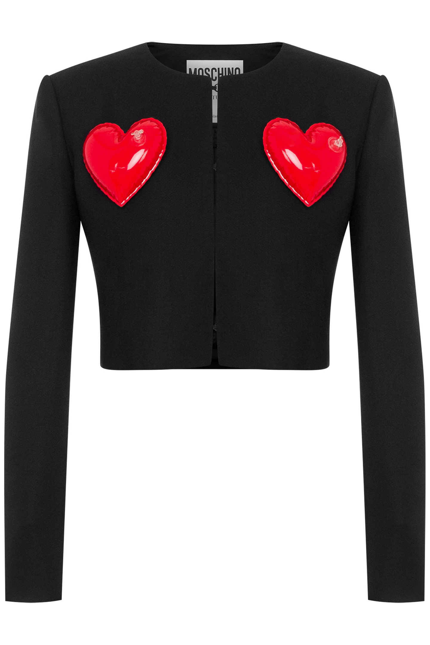 Cropped Jacket In Stretch Cotton And Viscose Gabardine With Inflatable Red Hearts On The Front.