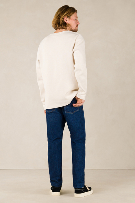 Long Rise, Tapered Leg, Non-Stretch.