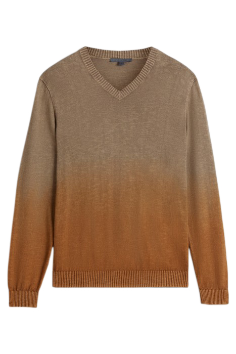 KANE LS SLUB COTTON VEE WITH DIP DYE SIENNA BROWN