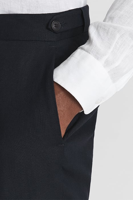 Give Your Suit Collection A Breezy Update This Summer With The Kin, Crafted From 100% Linen For A Wear That Is Both Lightweight And Comfortable - Especially When In Warmer Climes. These Trousers Remain Traditional With A Zip Fly, Hook Closure, Functional Pockets And Pressed Creases Whilst The Slim Fit And Updated Fabrication Add Modernity. Tuck In A Shirt Then Add Leather Shoes And The Matching Blazer. Finish Off By Choosing A Tie From Our Accessories Collection For An Inherently Current Look.