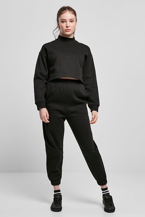 LADIES CROPPED OVERSIZED SWEAT HIGH NECK CREW BLACK