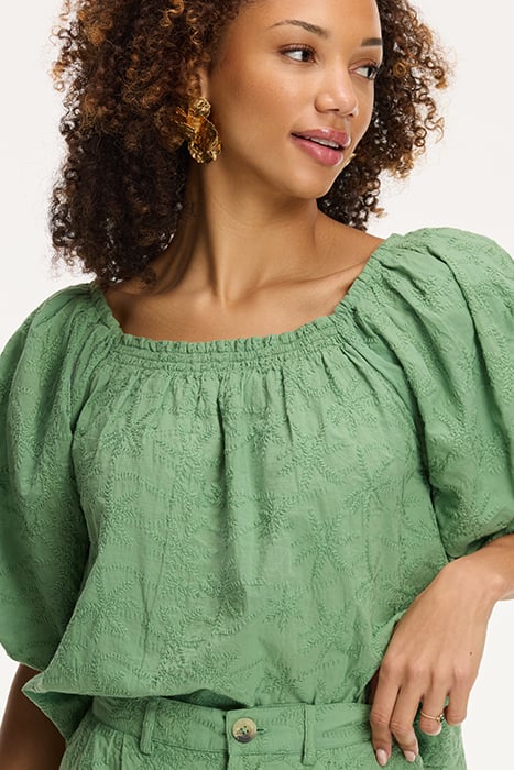 LADIES ELZA BLOUSE 3D PALM EMBRO GREEN GREEK PALM