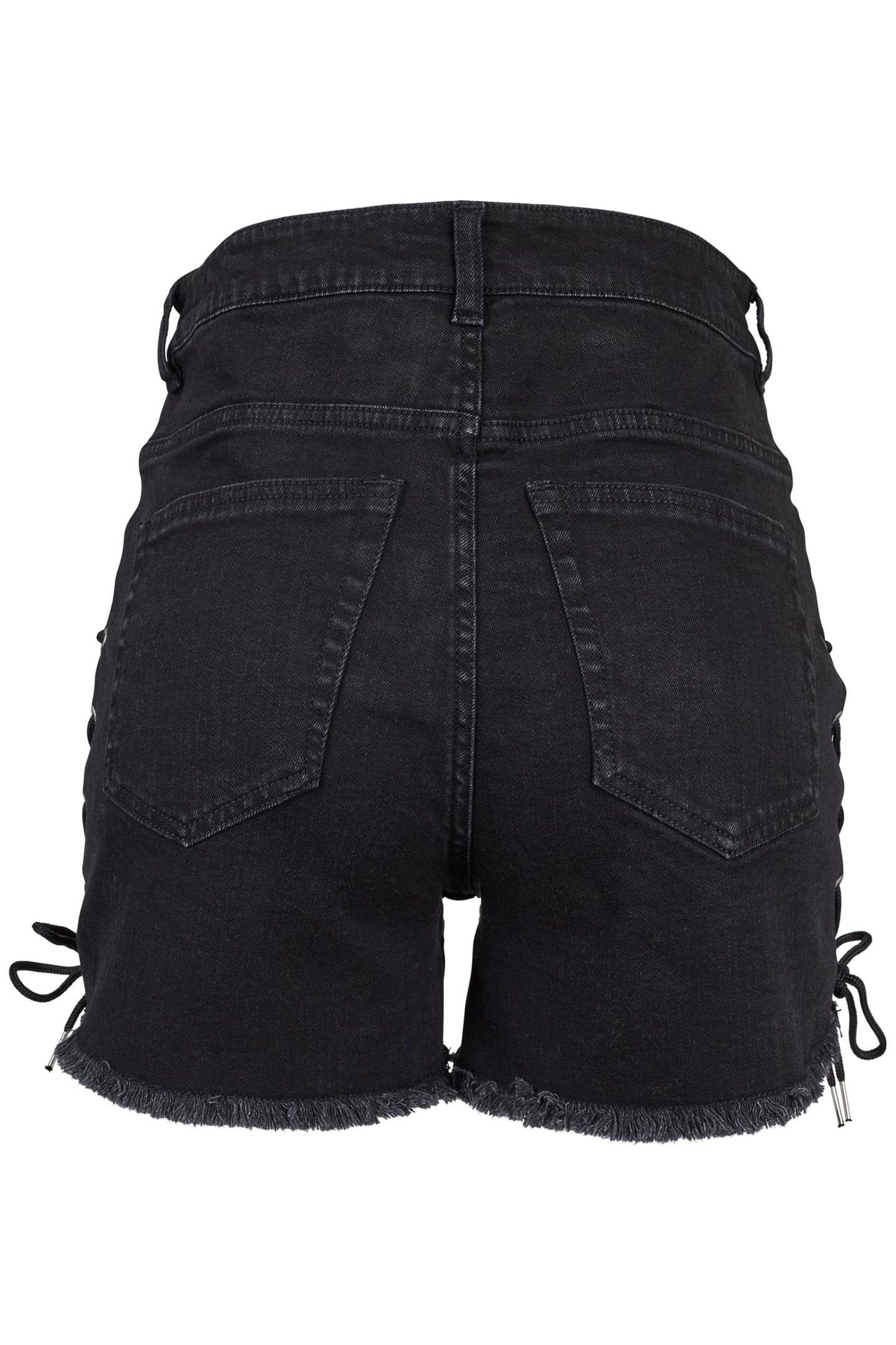 LADIES HIGHWAIST DENIM LACE UP SHORTS BLACK WASHED