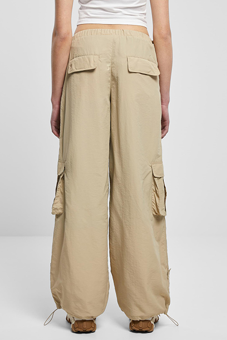 LADIES WIDE CRINKLE NYLON CARGO PANTS CONCRETE
