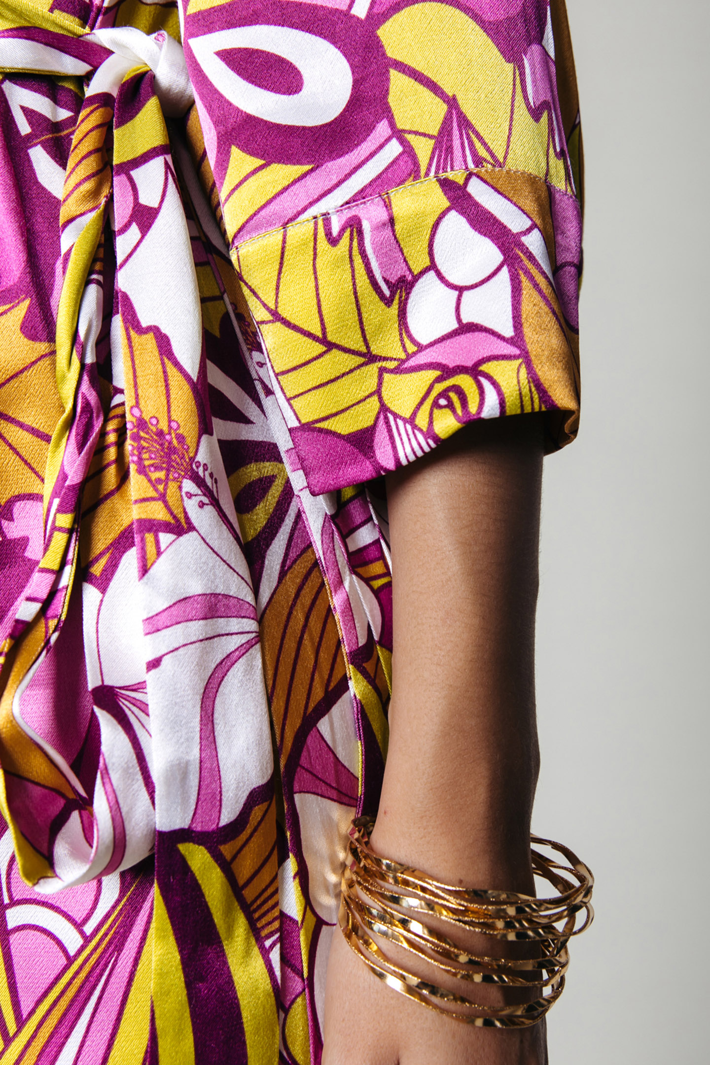 LELA FLORAL WRAP MAXI DRESS LS MULTICOLOR