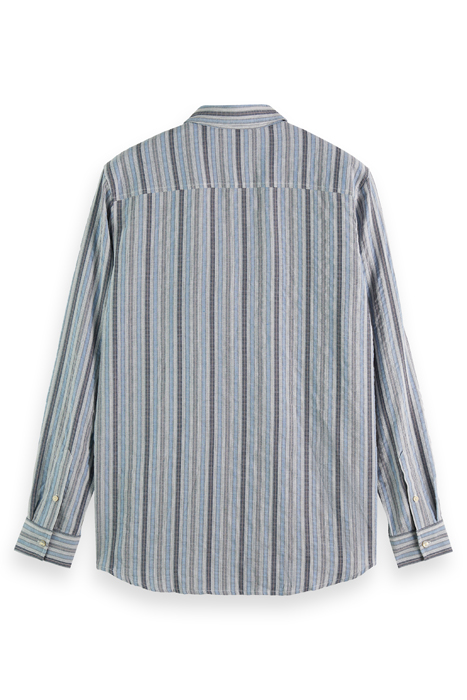 Introducing the Lightweight Dobby Stripe Shirt in Blue Stripe by Scotch & Soda, available at Otrium. This stylish shirt features a classic blue and white stripe pattern that adds a touch of sophistication to any outfit. Made from lightweight dobby fabric, this shirt is perfect for both casual and formal occasions. The slim fit design ensures a modern and flattering silhouette, while the button-down collar adds a polished finish. Elevate your wardrobe with this versatile and timeless piece from Scotch & Soda.