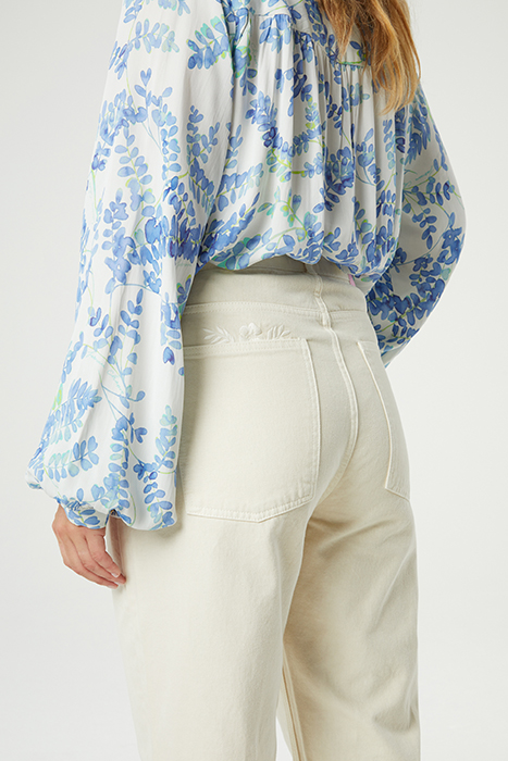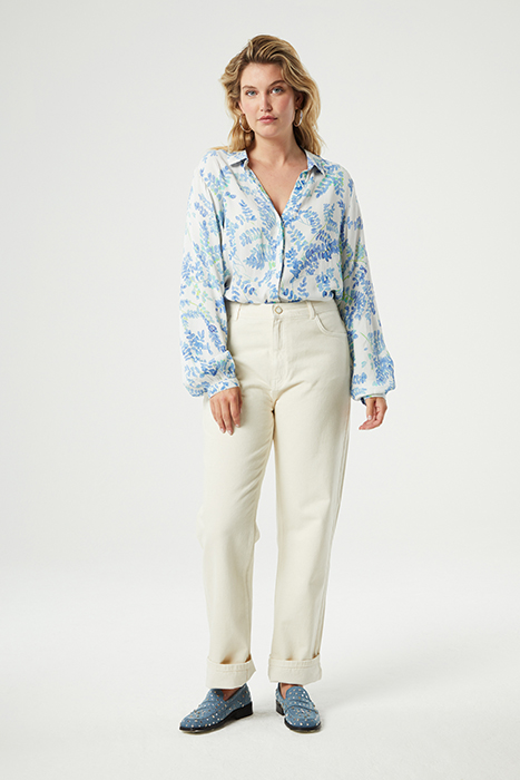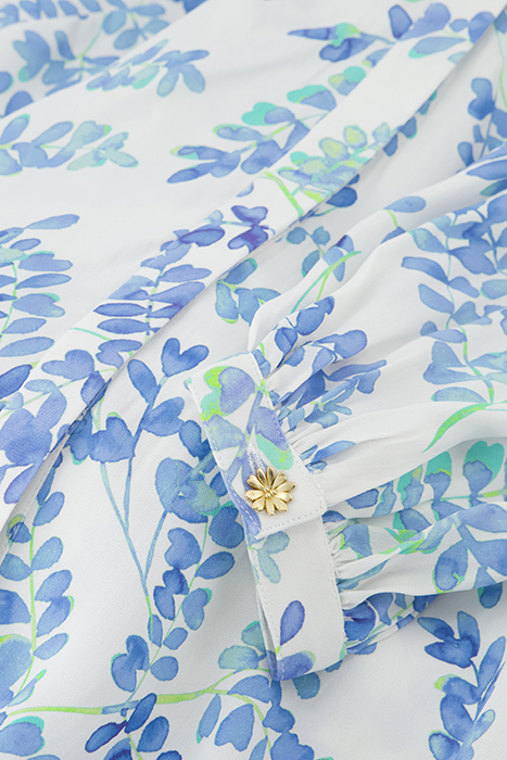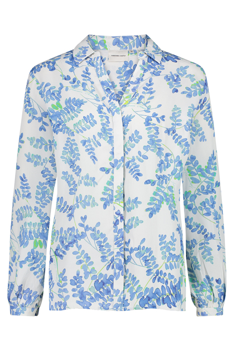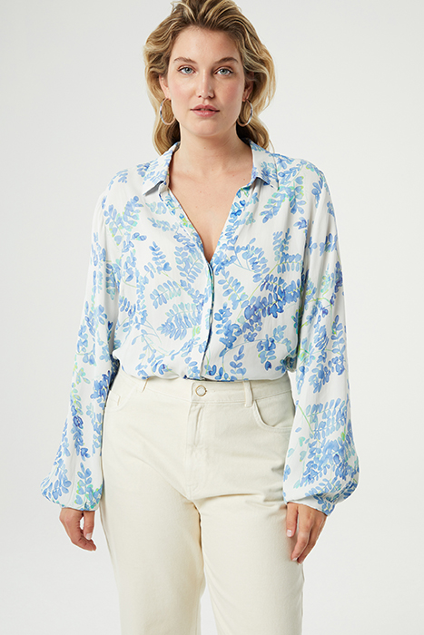 Blouse With Classic Collar And Button Fastening. Liv Blouse Has An All-Over 'Blue Heathers' Print.