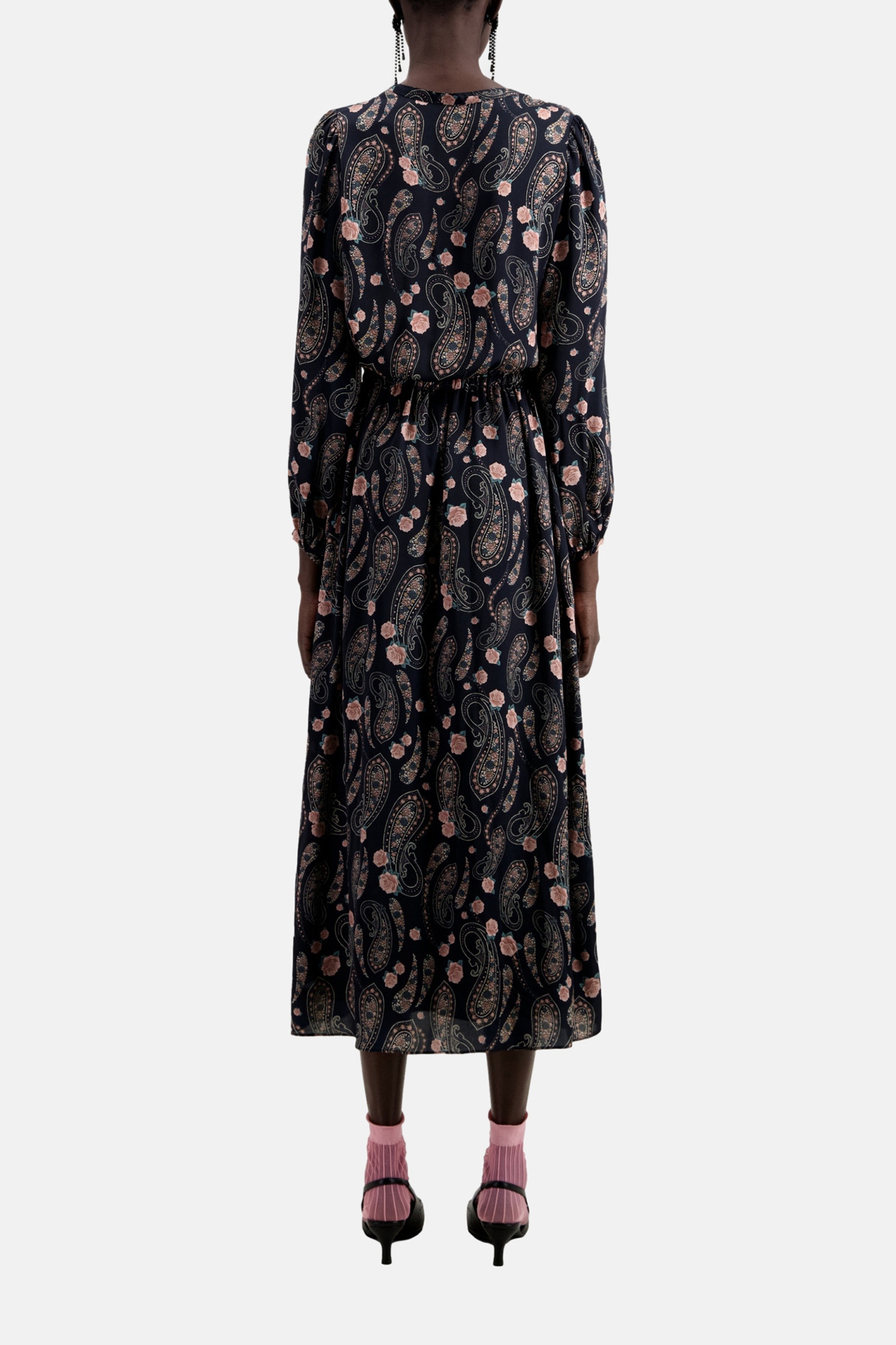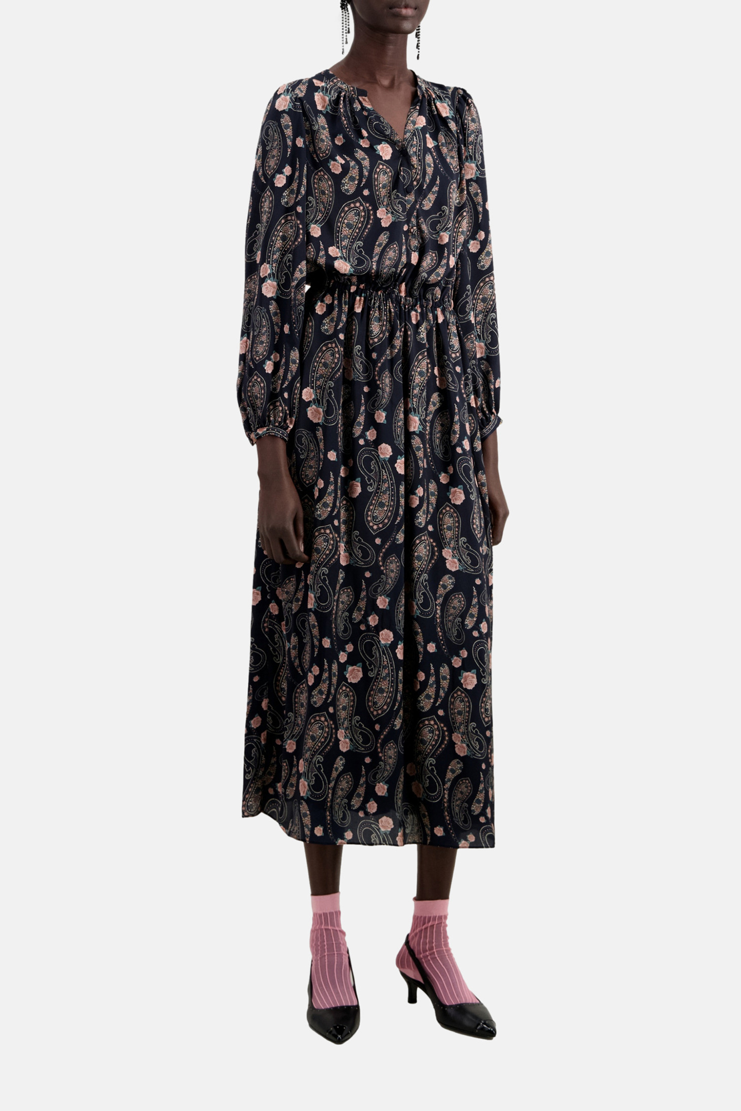 LONG DRESS WITH LONG SLEEVES BLACK/PINK