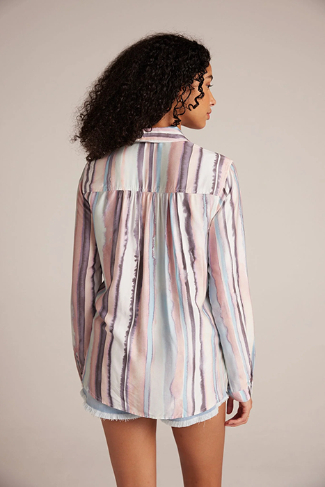 LONG SLEEVE ROUNDED HEM BUTTON DOWN COASTAL STRIPE PRINT