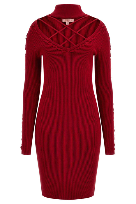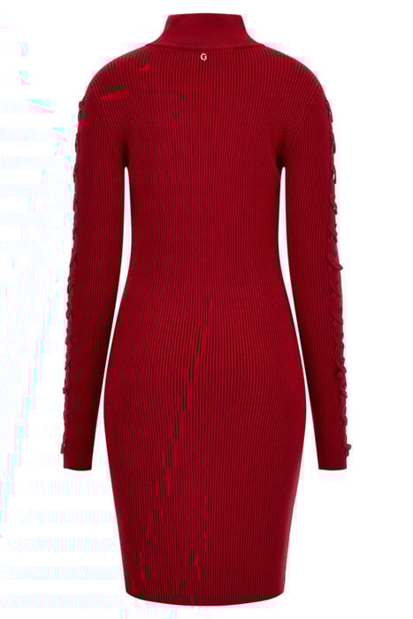 LS MOCK NK LACE UP D CHILI RED