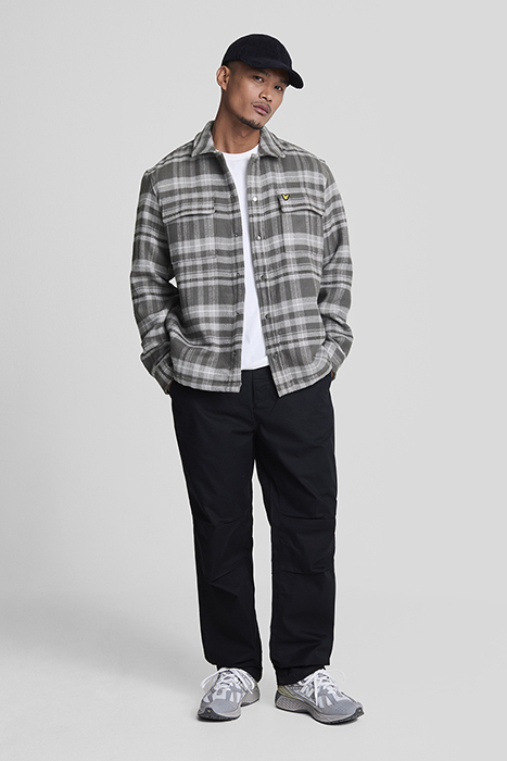 LYLE & SCOTT BRUSHED TARTAN OVERSHIRT WARM GREY