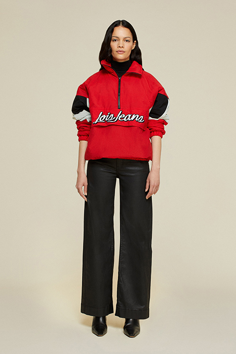 The Macy Is Our Retro Nylon Ski Jacket In Bright Red With Embroidered Detail And An Elastic Hem.