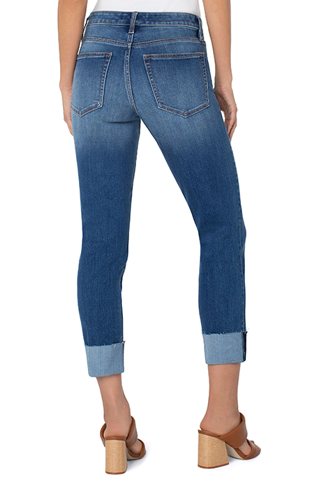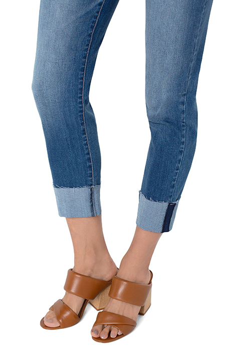 The Marley Girlfriend Raw Cut Cuff Roll Scottsdale From Liverpool Jeans Are Casual Jeans With Excellent Comfort And Stretch. Shown Here In Scottsdale With Raw Cut Cuffed Ankles, These Jeans Will Keep You Looking Trendy. This Modern Eco Marley Girlfriend Jeans Was Designed Using New Laser Techniques And Processes That Gives The Liverpool Look" And Uses A Fraction Of Our Natural Resources.