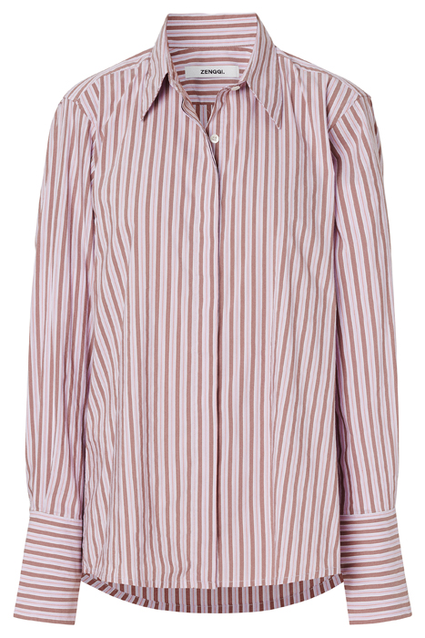 The Zenggi Cotton Stripe Shirt Is A Soft Cotton Blouse With A Slim Fit And Fitted Shoulders. Designed With A More Pointed Collar, Turn-Up Cuffs And A Hidden Button Placket.