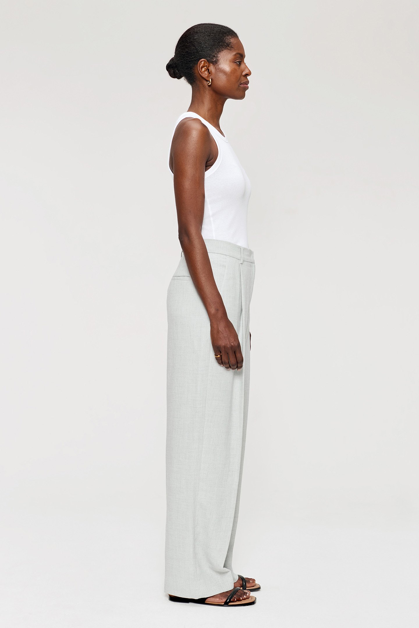 MELANGE LINEN STRAIGHT PANTS LIGHT GREY MELANGE