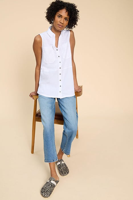 MELANIE MIX LONGLINE SHIRT NATURAL WHITE