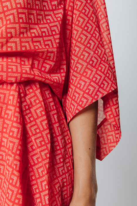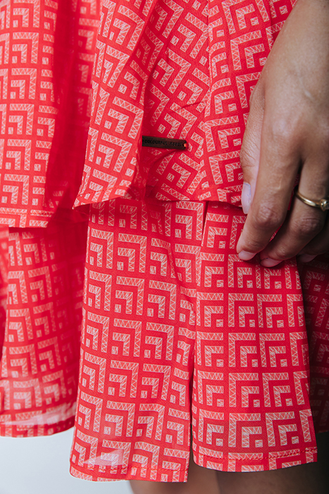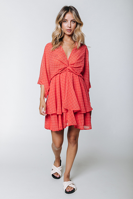 MENCIA SMALL GEO TWO LAYER MINI DRESS BRIGHT ORANGE