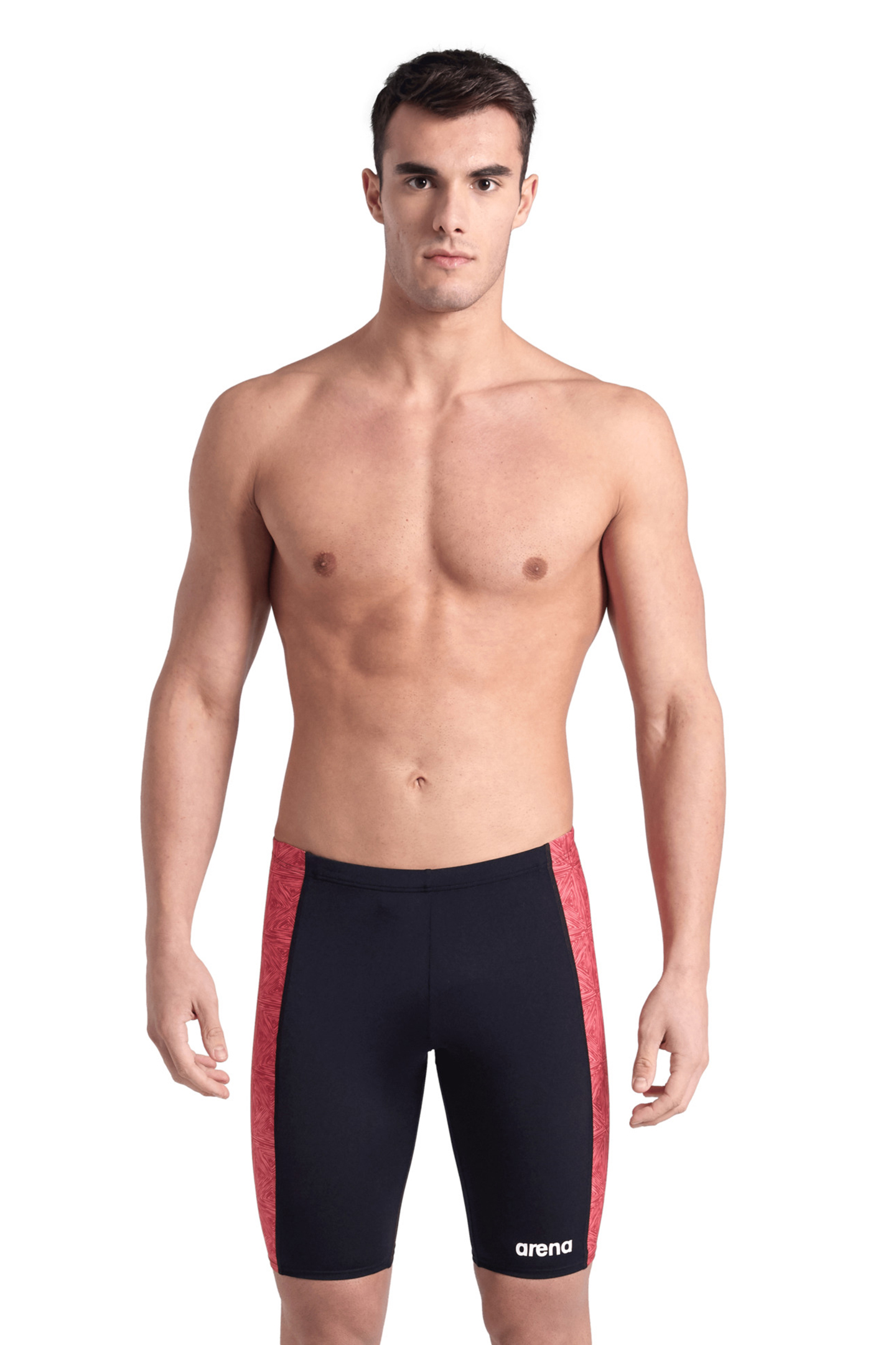 MEN'S ARENA ABSTRACT TILES SWIM JAMMER BLACK TEAM RED