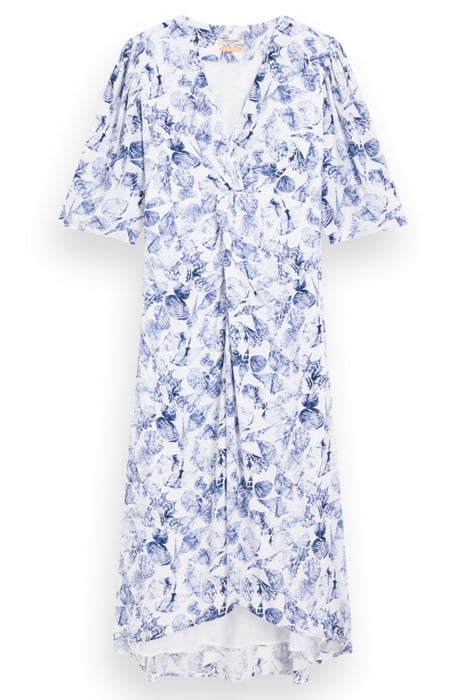 MIDI WRAP DRESS WITH KNOT DETAIL SHELL BATIK BLUE