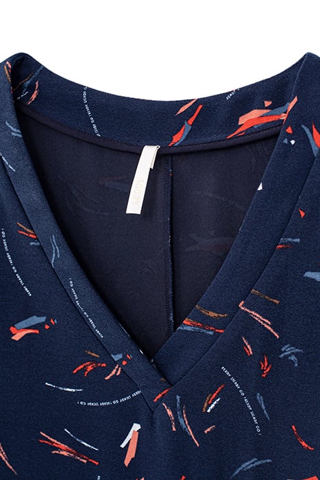 NAVY DRESS WITH ARTY PENCILLED PRINT