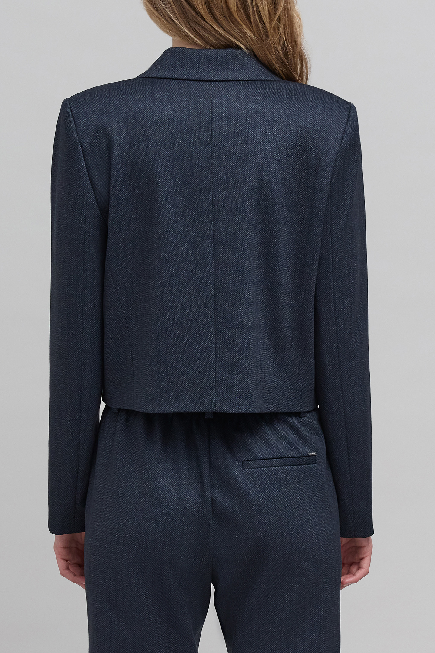 NAVY HERRINGBONE PATTERN SHORT SUIT JACKET