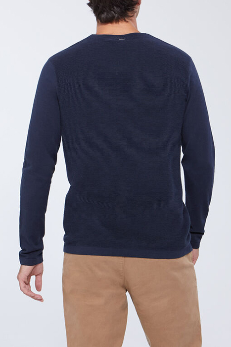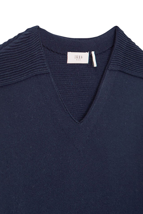 NAVY V.NECK SWEATER WITH OTTOMAN RIBBING
