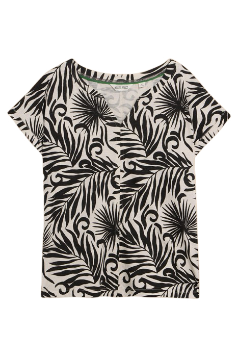NELLY NOTCH NECK TEE BLACK PRINTED