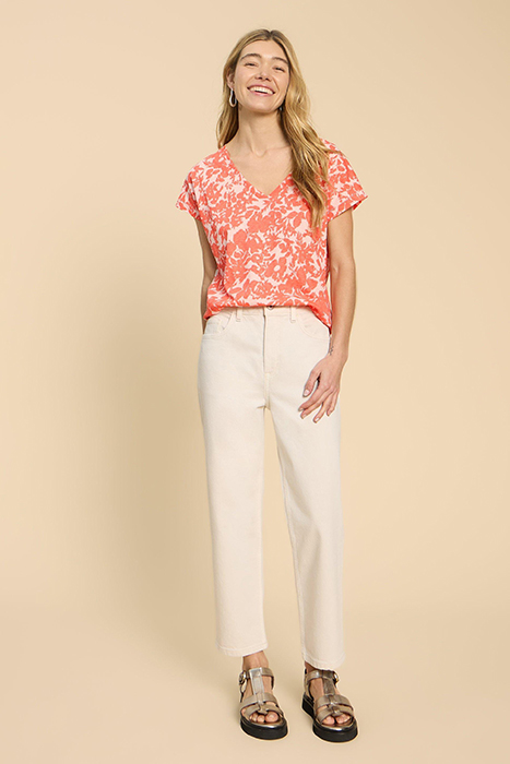 NOAH V NECK TEE ORANGE PRINTED