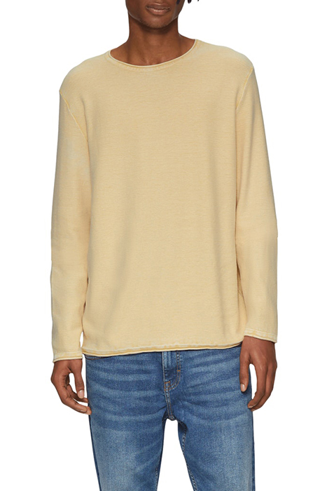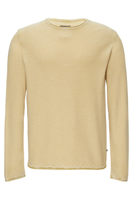 Fabric: fine knit, knit, slub yarn; Finishings: garment wash, garment dye; Fit Overall: regular fit; Hem: rolled hem; Material: cotton; Neckline: rolled hem, round neckline, crew neck; Occasion: casual; Pattern: plain; Quality: fine, high quality, stretchy; Sleeve: rolled hem, long sleeves; Style: casual, clean