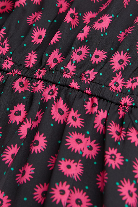 ONE SHOULDER PRINT DAISY DOTS LONG SLEEVED SHORT DRESS PINK
