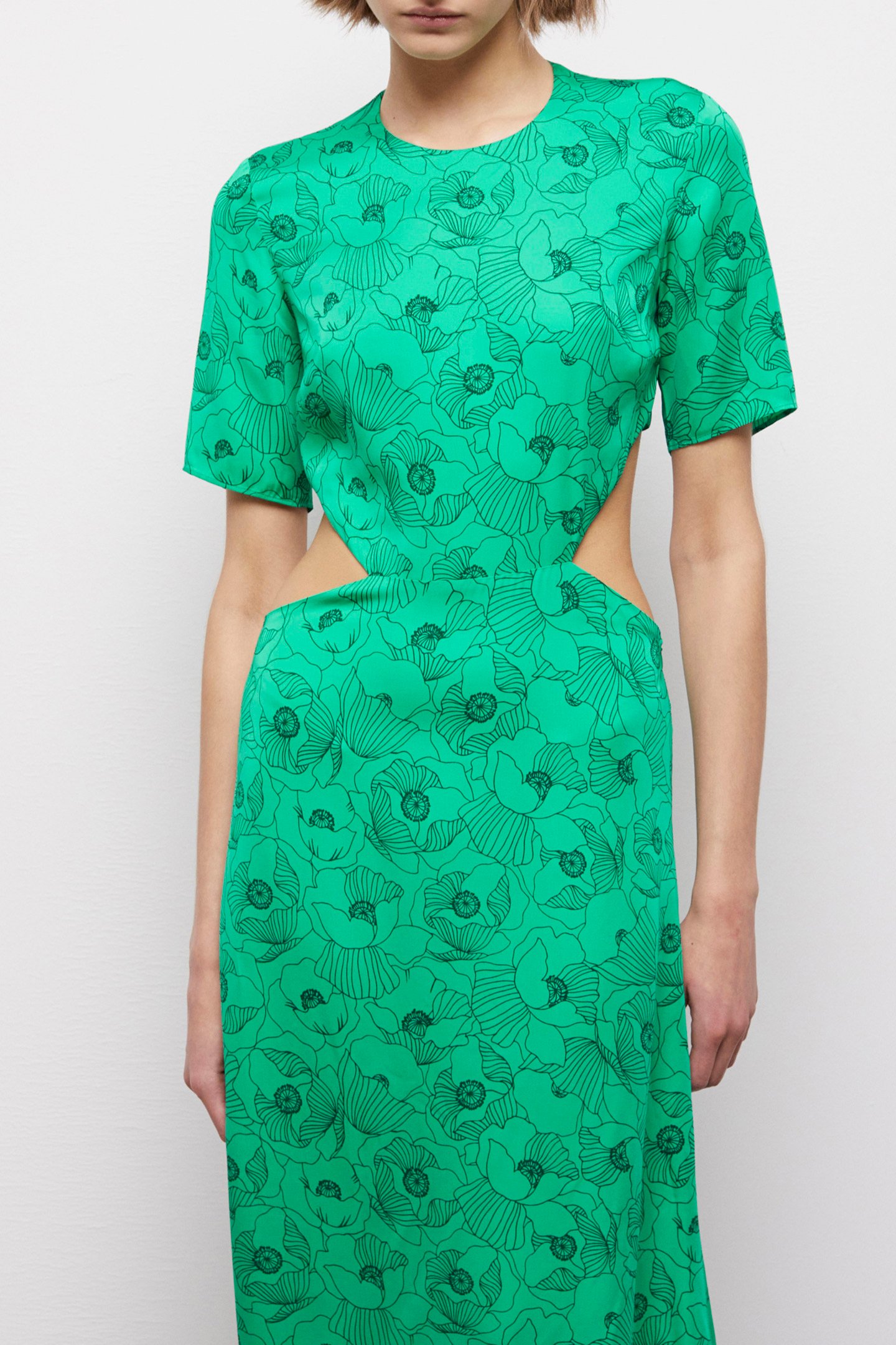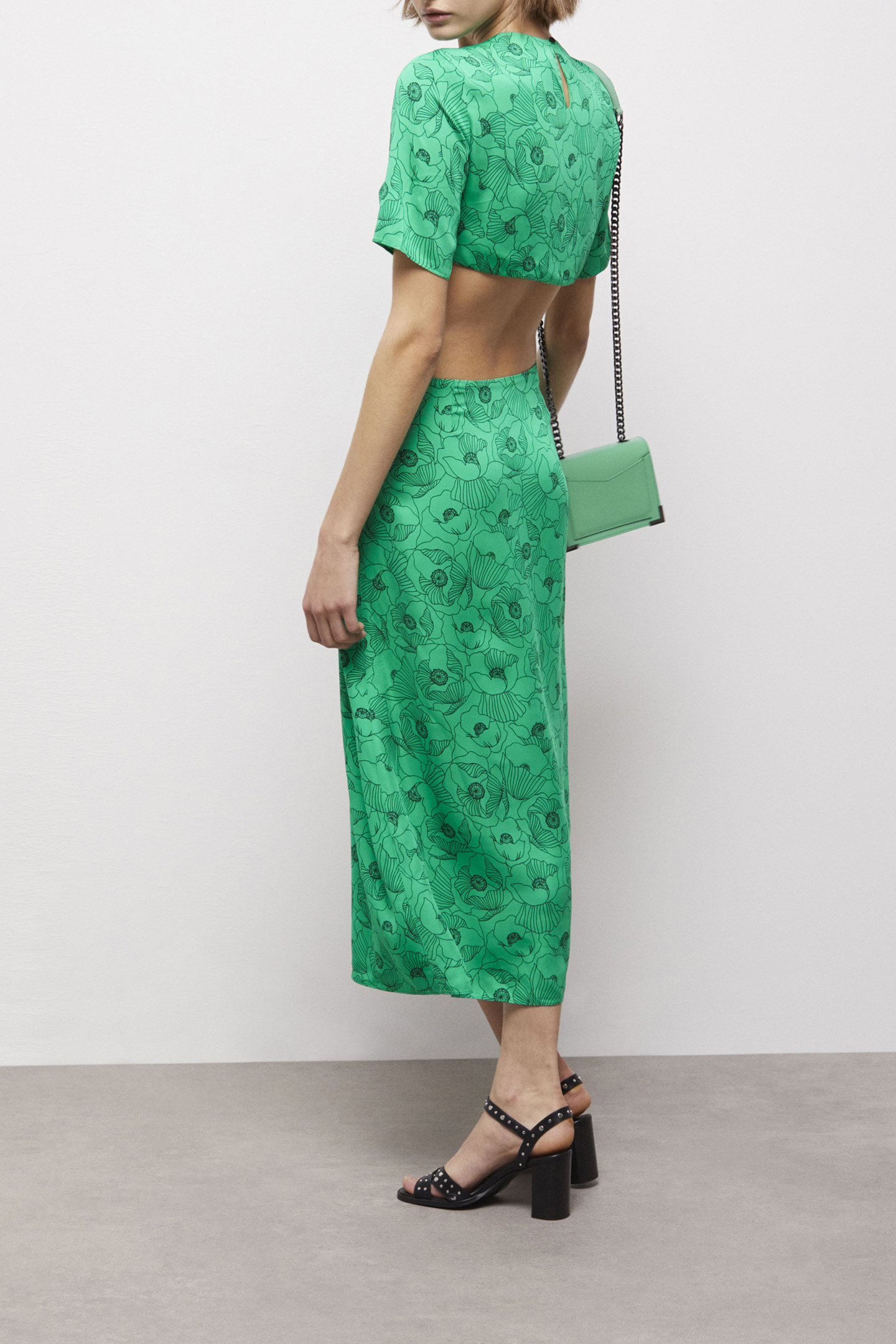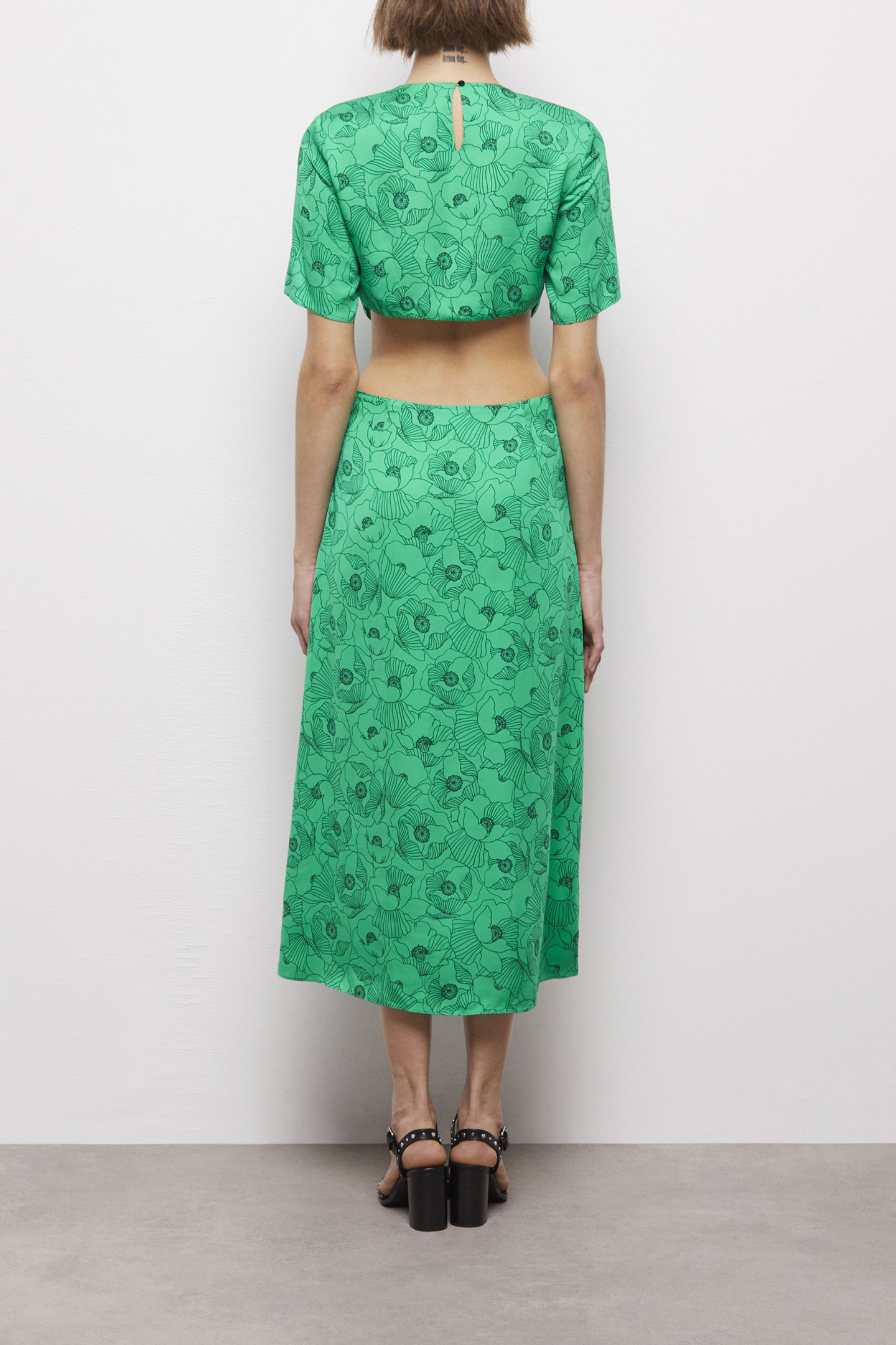 OPEN BACK LONG DRESS WITH SHORT SLEEVES GREEN