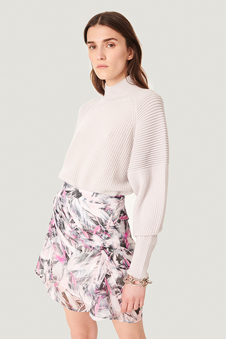 Make an impact with the Pascot Mini Skirt In Grey/Ecru/Pink Skirt, a perfect harmony of minimalistic elegance and contemporary edge. A wardrobe essential that defines effortless French style.