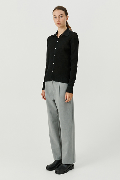 Paul Is A Regular-Fit Knitted Shirt. Light Sheer Rib Fabric. Button-Down Front, Shirting Collar, Long Sleeves, And Turn-Up Ribbed Cuffs.